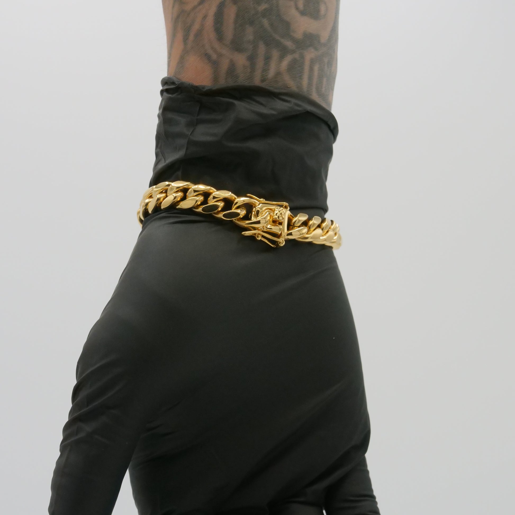 The wrist game is everything. This 10mm Cuban Link Bracelet matches the chain, giving you the full set. Thick, glossy, and unmissable - it's the kind of wristwear celebs flash when the cameras roll. Pair it with the chain or rock it solo. Either way, you'll turn heads.